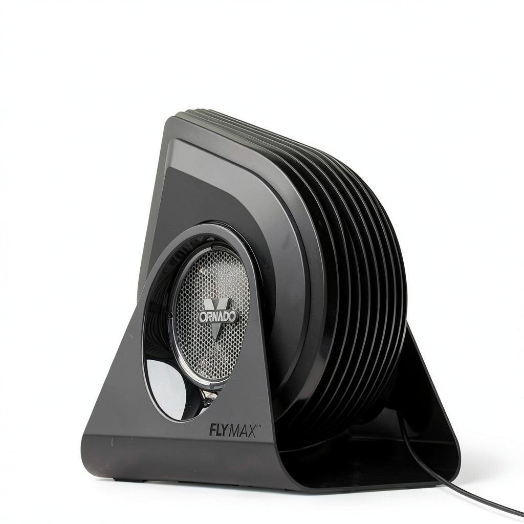 The Vornado FLY MAX High Velocity Floor Fan is engineered for intense air movement, providing up to 2300 cubic feet per minute (CFM) of airflow. Housed in a durable powder‑coated black shell, the fan features a brushless motor that runs quietly at 2000 RPM while consuming only 75 watts. Four speed levels are selectable via an included remote, and the 180‑degree tilt head allows precise direction of airflow. Designed for indoor use, it measures 11.27″ D × 13.01″ W × 13.71″ H and weighs 13.47 lb, making it stable on the floor yet easy to reposition.